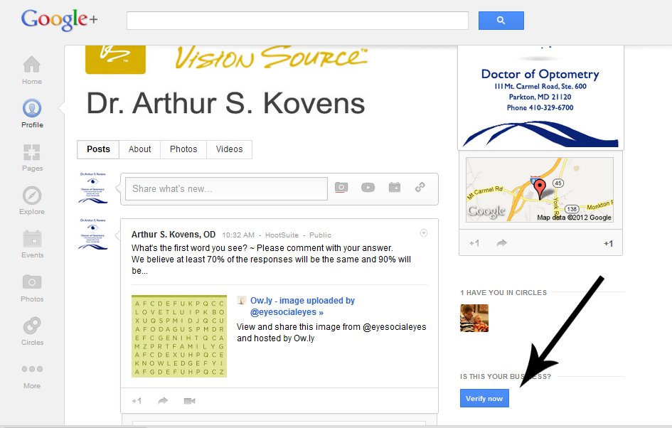 Have you verified your Google+ Page yet? By verifying your Google+ Page it allows you to connect it to your Google+ Local Page. As you can see here http://bit.ly/VeoBh7 my Google+ Local listing (The one where people write reviews) is now connected to my Google+ Page (Think of it as Facebook for Google). You can see my posts and review me as well.